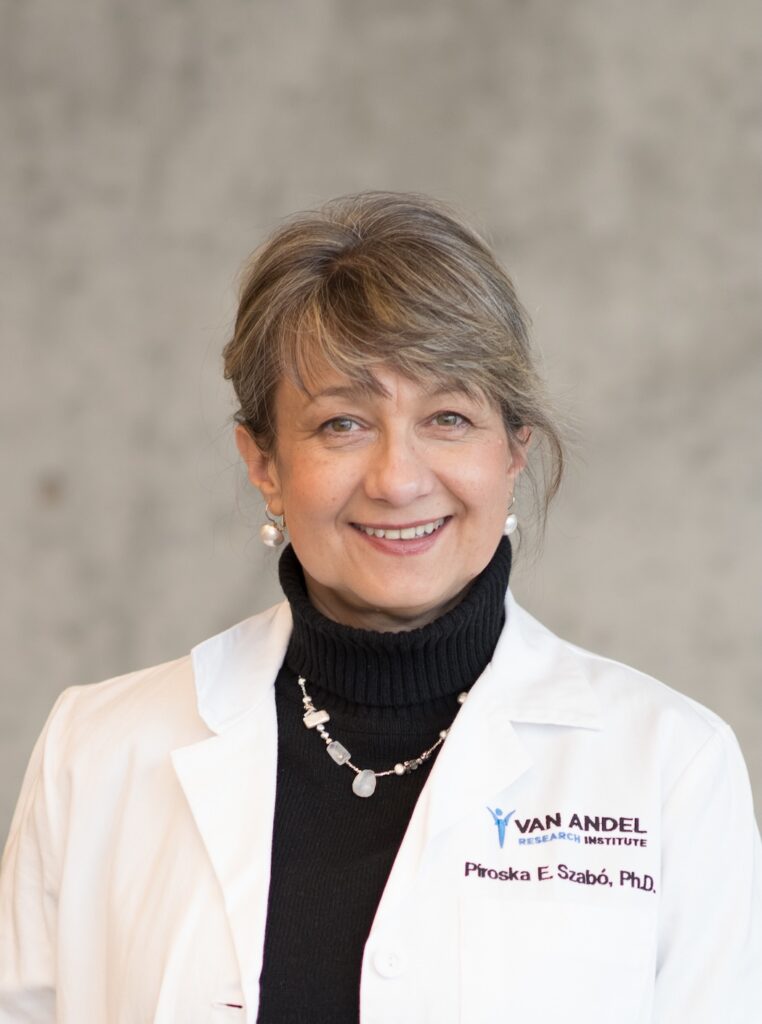 Dr. Piroska Szabó earned an M.Sc. in biology and a Ph.D. in molecular biology from József Attila University, Szeged, Hungary. She joined Beckman Research Institute of City of Hope, Duarte, Calif. in 1992 as a postdoctoral fellow. She served first as an assistant research scientist and associate research scientist before becoming an assistant professor in the Department of Molecular and Cellular Biology at Beckman Research Institute in 2006 and was promoted to associate professor in 2011. She joined VAI in 2014 as an associate professor in the Department of Epigenetics.